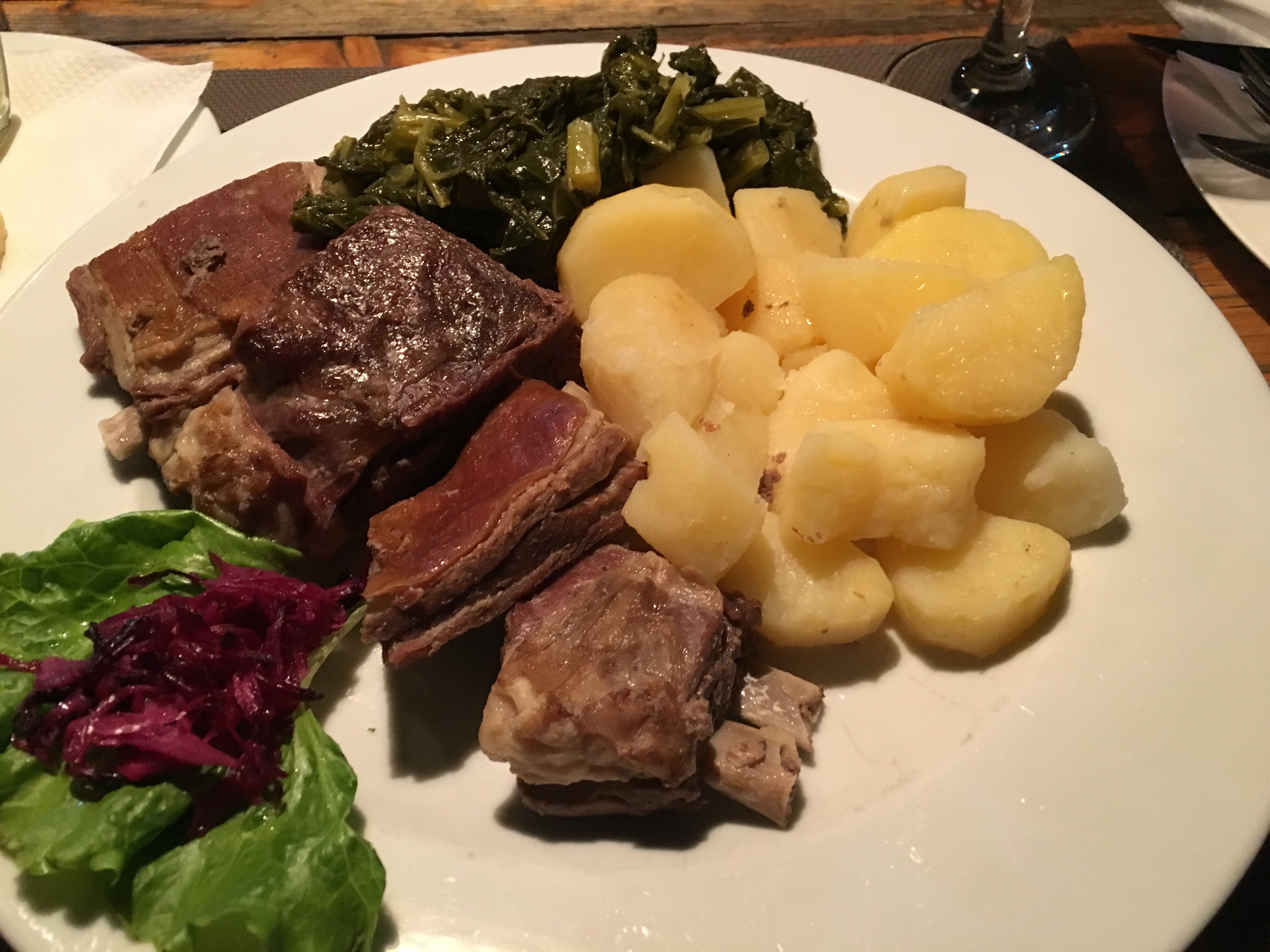 Smoked, grilled lamb with chard and potatoes. This was really good and homy. The lamb reminded me of corned beef. Yum!