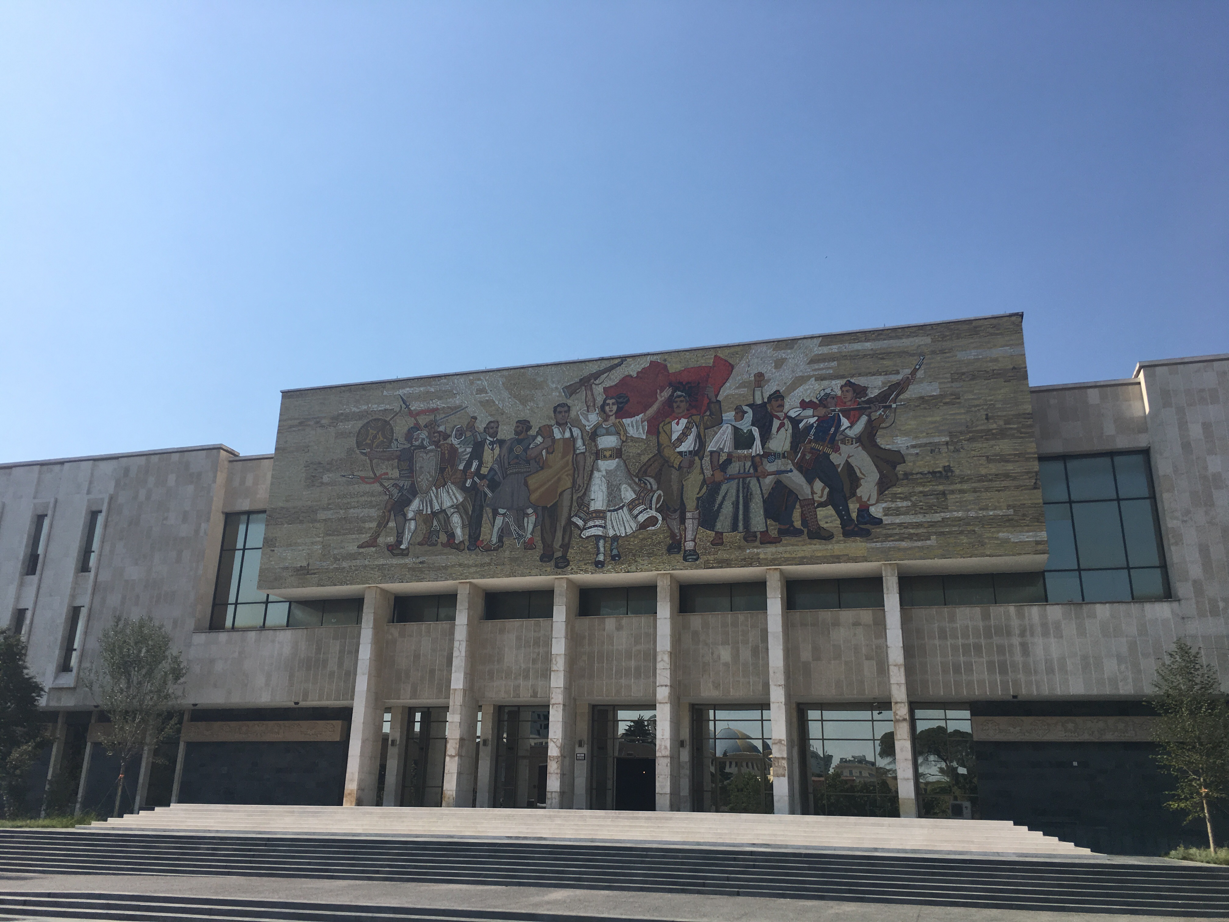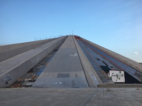 The abandoned Pyramid building. It was completed just before the fall of communism and was never used.