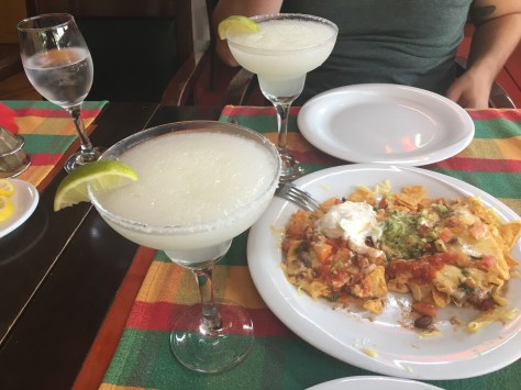 We started with margaritas and “nachos”. The “nachos” were seasoned, Doritos like chips, with melted cheese, beans, “hot sauce”, sour cream, and guacamole. Not bad, not really good. What we should’ve expected from a Mexican restaurant in Albania π¦π±