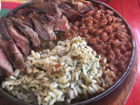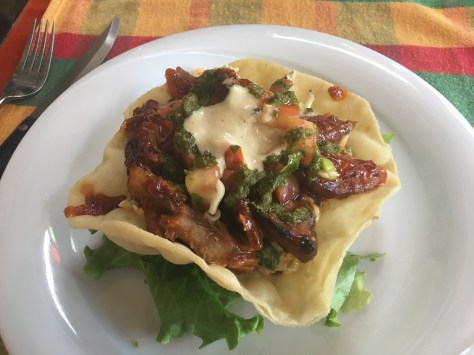 I had the pork “tacos”. It was pretty good. Not tacos, more like BBQ pulled pork, Cole slaw, and beans in a tortilla bowl. It tasted more like American BBQ than Mexican. I didn’t hate it.