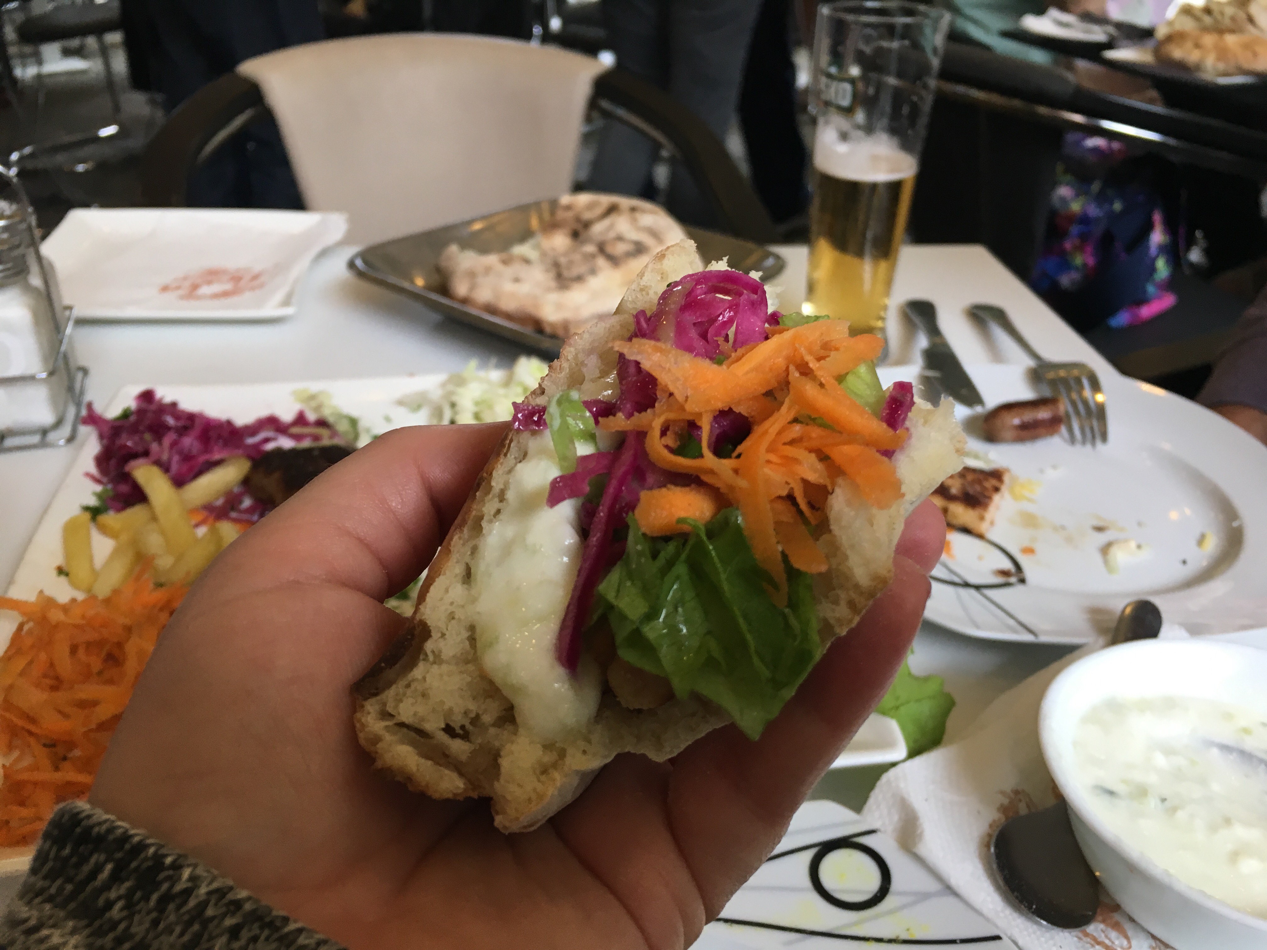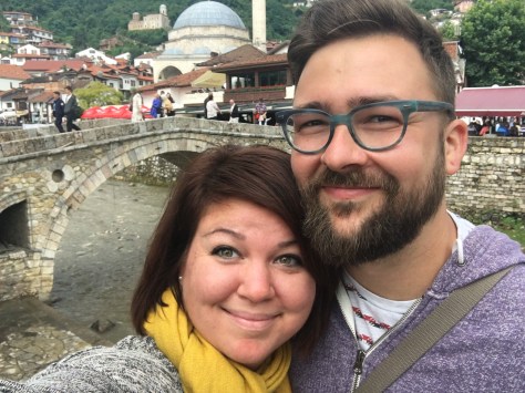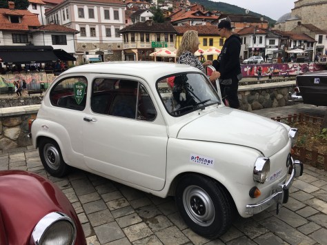 We stopped after a few hours of driving in Prizren, Kosovo. It is the cultural center of Kosovo and the perfect lunch stop on our way to Prishtina, the capital. Tasty Kosovoan Cabernet Sauvignon. We bought some delicious apricots from this sweet guy. He came around to our table and told us he picked them today… how could I resist?! He asked us where we’re from. After telling him, he thanked us for ending the war in 1999 and commented on how great Bill Kleentone was for Kosovo 😃😂👍🏻Cute grill master. Amazing bread! Like a mix of ciabatta and Pita. I loved it!!!Some pretty weak “vegetable” soup. Ugly, but very good veal soup. Adam made the better choice in the soup category for sure! We shared the mixed grill platter. We loved all the veggies! They were all fresh and crunchy and lightly dressed in vinaigrette. Yum! The perfect pairing with the smiley grilled meats. Tsatziki. It was super tangy and garlicky! It was slightly fermented and almost sparkling. Unique and delicious. We really loved this quaint city! Antique car show 😍