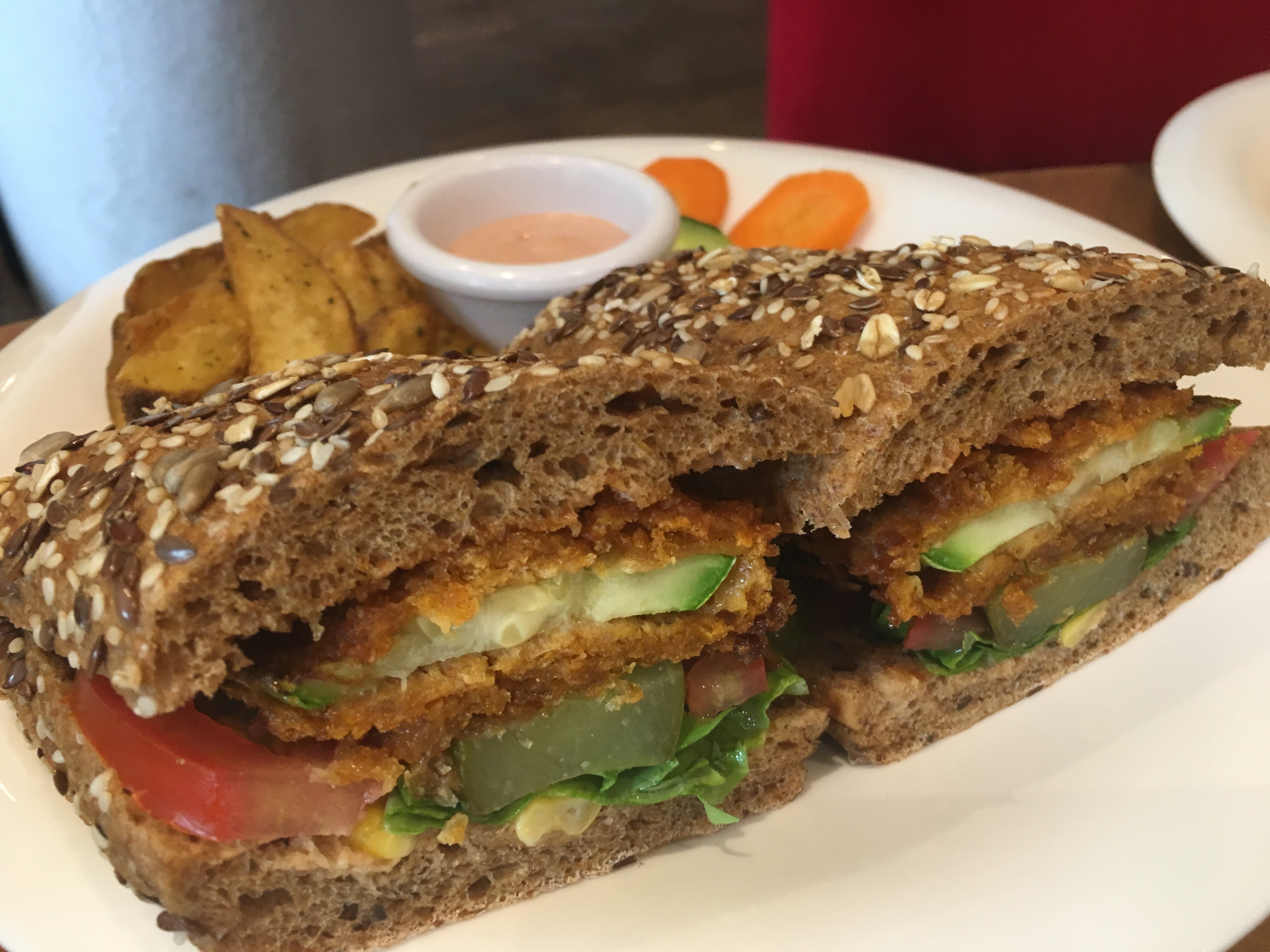 I had the crunchy zucchini and veggie sandwich. The zucchini was amazingly crunchy with a corn flake coating. Mmmm! The crunchy potato wedges served with out sandwiches were also really good!