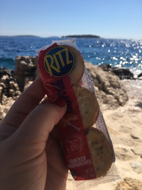 It’s our last full day here in Primosten and we still have lots of little things in the refrigerator, so I made a strange but tasty pasta.