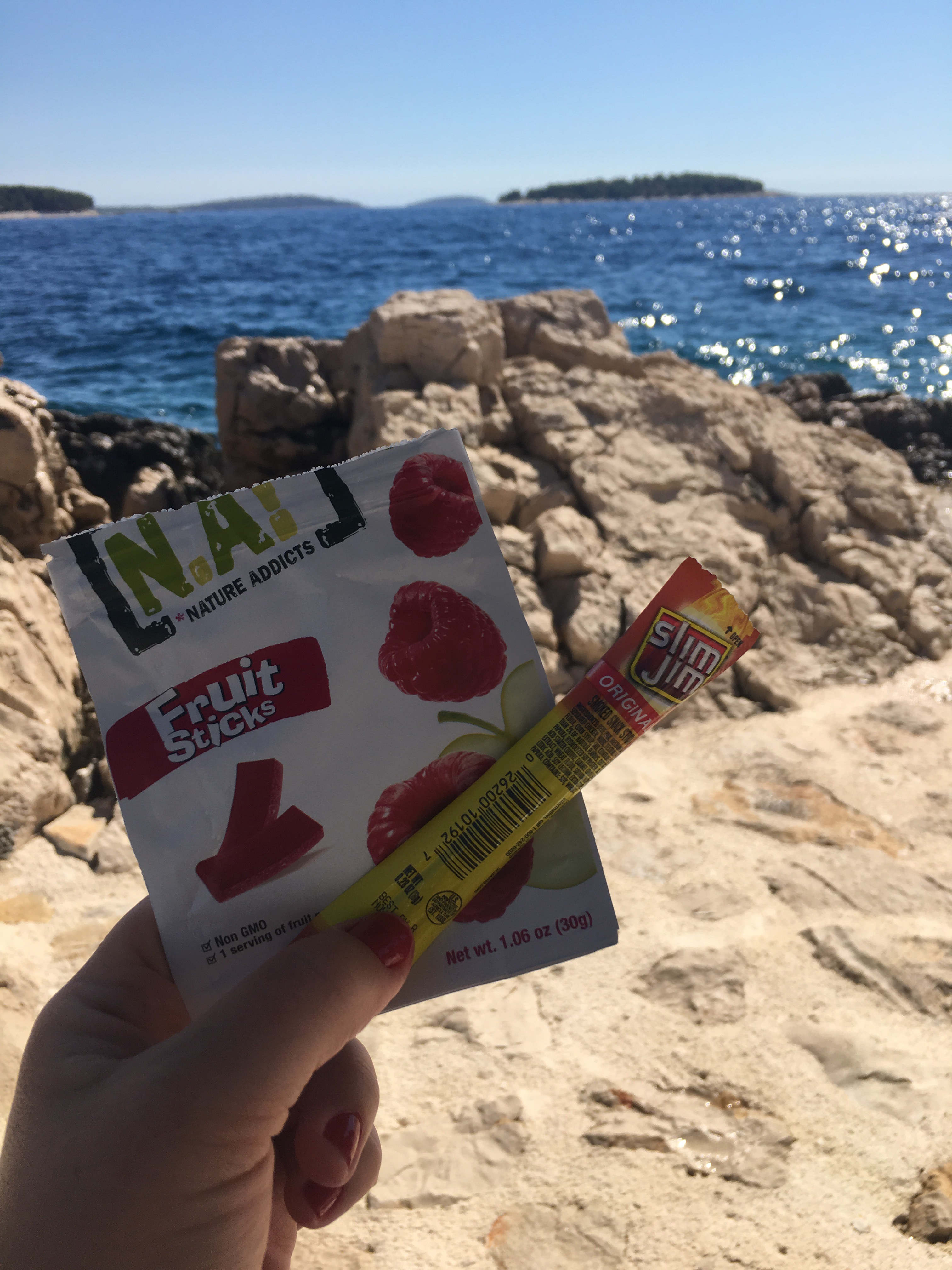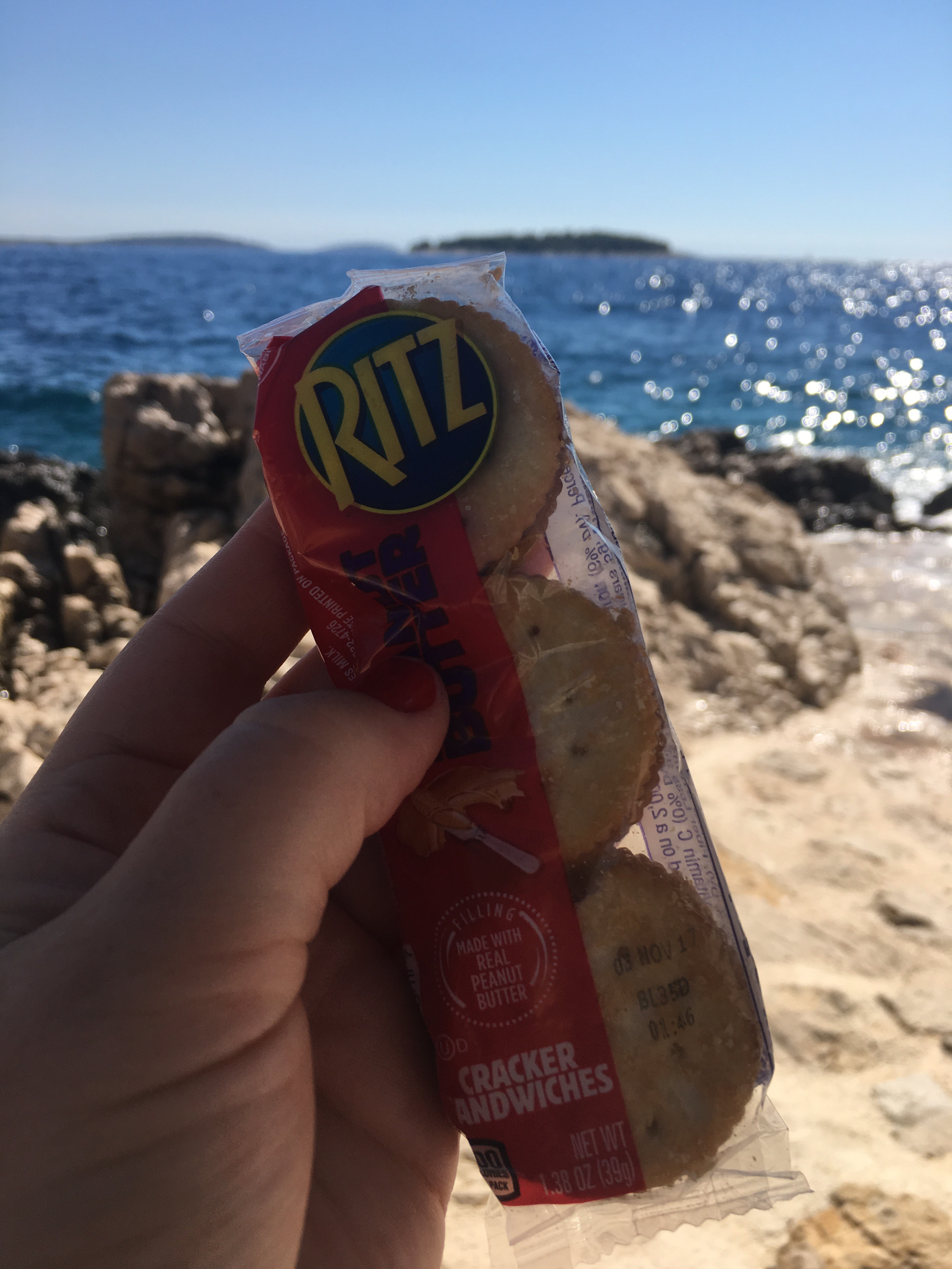It’s our last full day here in Primosten and we still have lots of little things in the refrigerator, so I made a strange but tasty pasta.