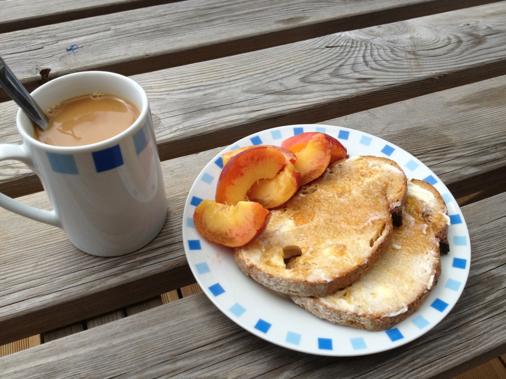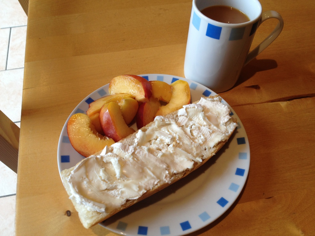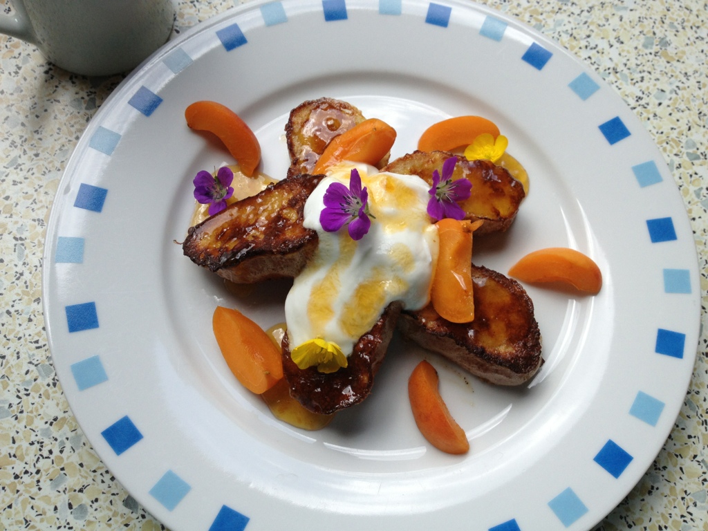 Mmmm…. I love France and that I’m a great cook 😉 On the menu today- Pain perdu avec abrigot et fromage blanc. Nourriture délicieuse!
