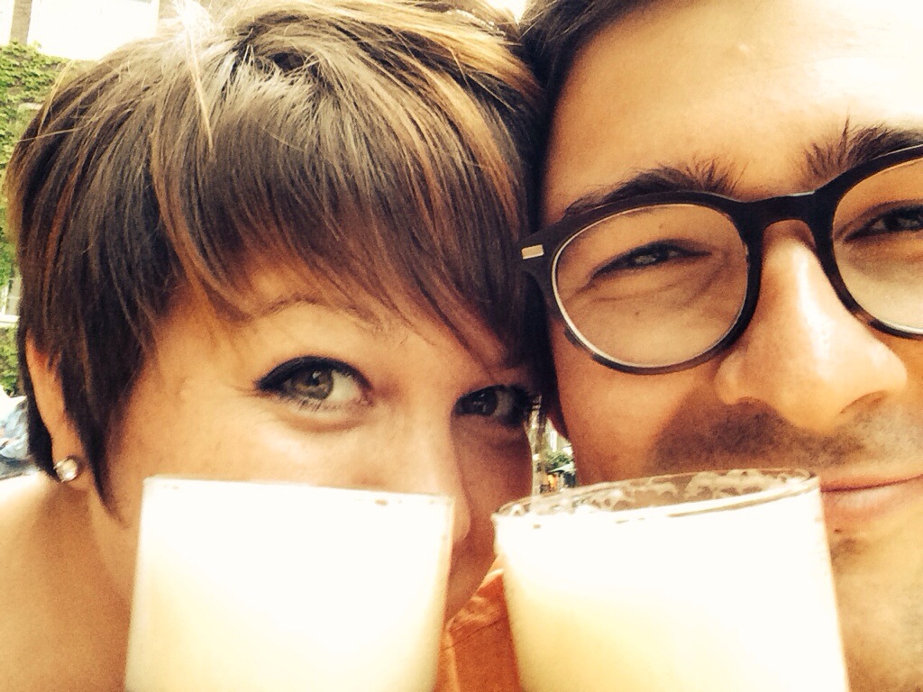 Breakfast? Speckfast. I slowly crisped speck while fresh bread baked in the oven. I cut up some fresh fruit and mixed iced coffees. Speck is too salty for me, but Adam can’t get enough of it… We need to get home and back on the healthy eating bandwagon before we both have heart attacks! I had a couple small bites, but decided to shift my focus towards the fresh bread and butter instead 🙂 Adam was happy to relieve me of my piece.