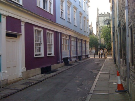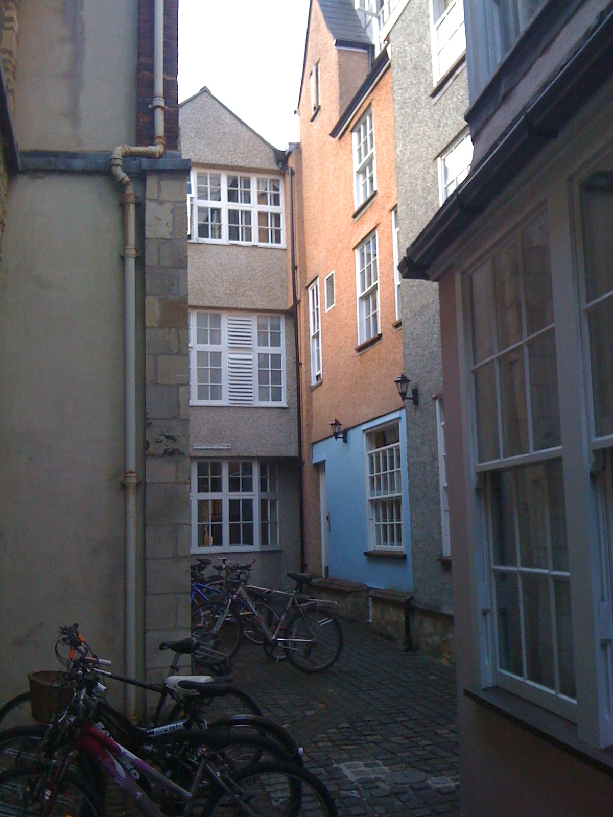 This is my room, the purple wall with the slightly open windows. This is the bad part about my rooom. I am on the ground floor. Although I don’t have to climb any stairs, I can only open my windows about four inches, for security. They are blocked with little blocks of wood screwed into the frame. And this alley is a busy walkway.