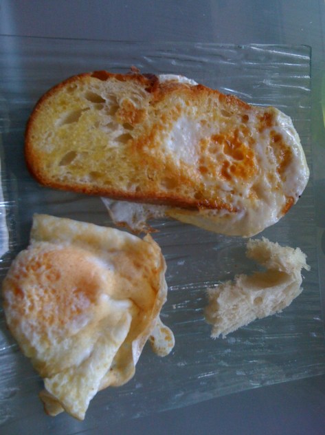 I proudly created this amazing American breakfast for Charity and I to enjoy, Cyrille wouldn’t go near it. In France, unlike America, the French only eat a small breakfast consisting of sweets only. They eat sweet cakes or sweet breads covered in Nutella, very sugary cereals, cookies, candies, and anything else that has a high sugar content. They refuse to eat anything savory in the morning, it litterally disgusts them. But, since we are American, Charity and I love savory breakfast. The toad in a holes I made were awesome. I used nice crusty bread from the corner bakery, nice French butter, and eggs that were fresh and hormone free. A great way to start the day in Paris!