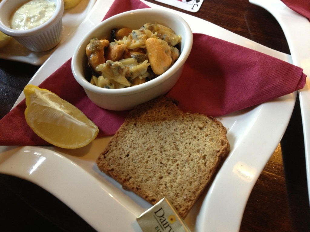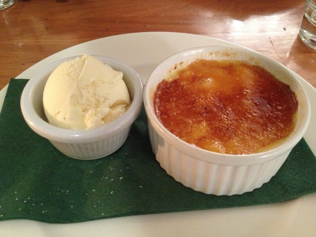 Our last meal in Dublin and it was excellent! We went to Green 19. The restaurant had a great atmosphere, excellent service, and even better food. We were all very happy with our meals. Unfortunately, I’m dealing with a cold, so I stuck to simple soupy type fare – tea, soup, salad (I need vitamins:) Adam had pan seared duck breast with celeriac purée, mashed potatoes and black berries. The duck was cooked perfectly- juicy and medium rare with a crispy exterior. The mashed potatoes were smooth and creamy and served with grilled baby leeks. I had the cream of mushroom soup. It was earthy, creamy and served very hot- perfect! The fresh green salad was crisp and perfectly sour with malt vinegar and green tomatoes. We finished our great meal with a perfectly crunchy-creamy creme brûlée. Ireland, it’s been great. Thanks!