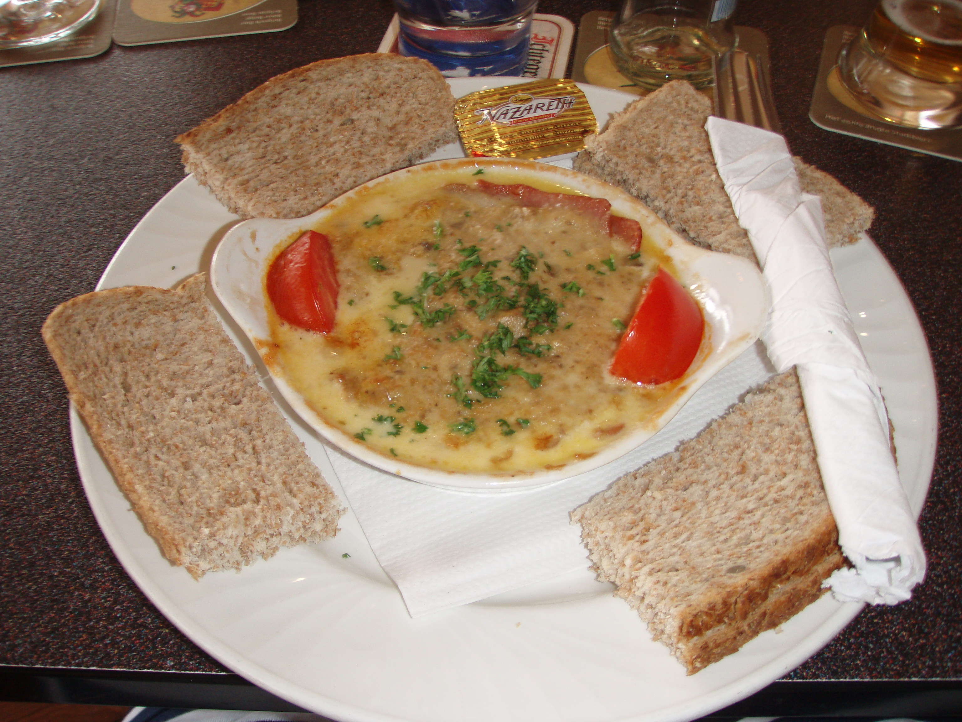 We had fire roasted ham with a red bell pepper, mushroom, and mustard sauce, sauteed potatoes with onions and Reblochon, and bread. It was all ok, but not as good as we had hoped.