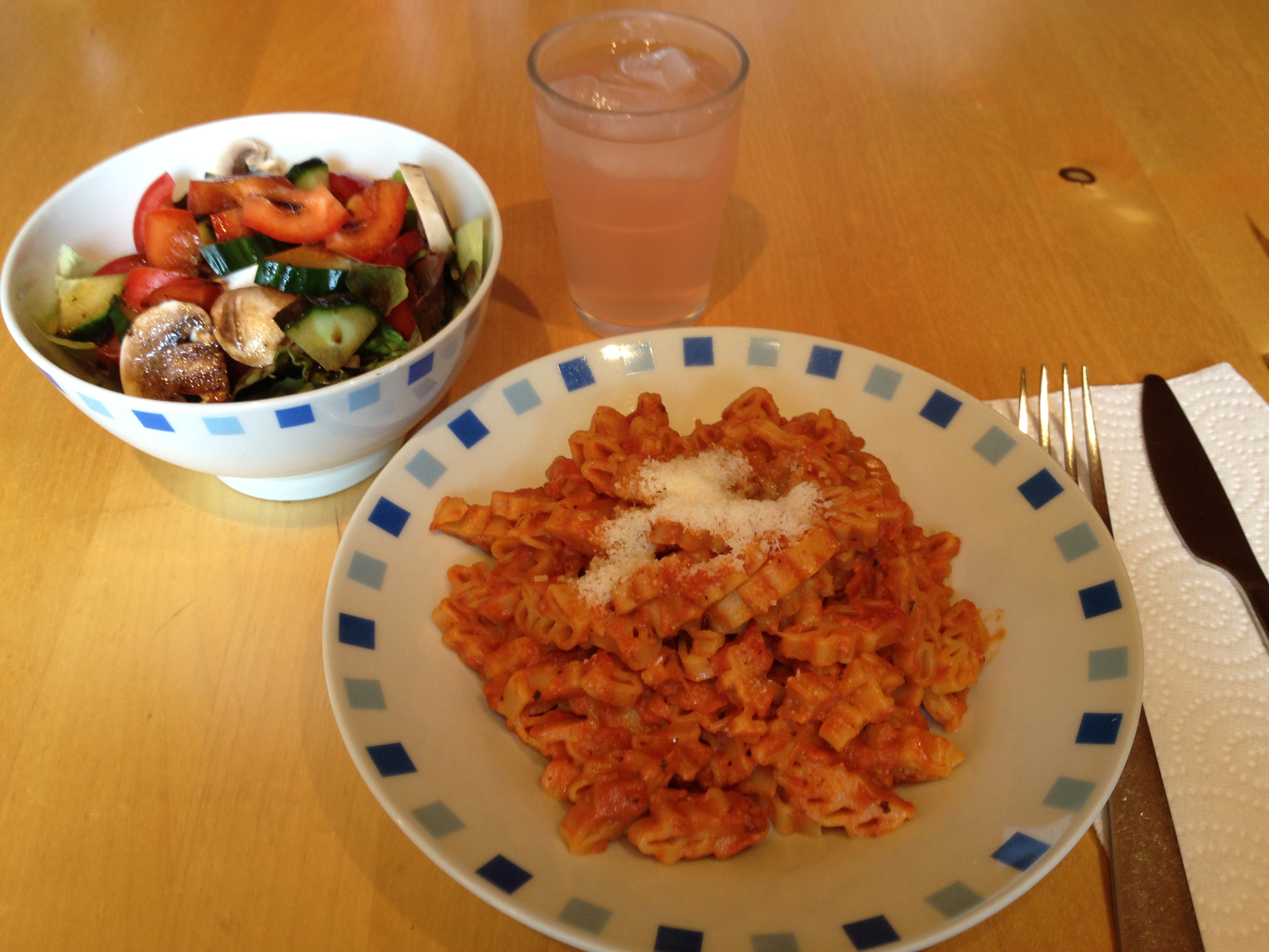 We went to an Italian pizza place outside Geneva – most restaurants are not open on Mondays. It was actually very good despite the fact that they had an automated pizza machine in the alley beside the restaurant – “fresh hot pizza in just four minutes! 24/7! “.ย Inside the real restaurant, we had the “Geneva” pizza with gruyere and salami and the “white” pizza with proscuitto, parmesan, and arugula. I LOVED the white pizza! I pretty much love anything with arugula. We also had the crudite salad which had corn, carrots, tomato, artichoke, olives, and a great garlic dressing. Everything was very good. We completed the meal with fine Italian espresso.