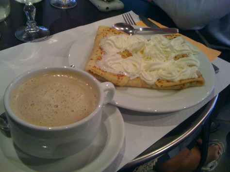 Just as it began to rain, Charity and Cyrille and I ducked into a small creperie for a quick snack to enjoy while waiting out the weather. This was a delicious crepe filled with strawberries in a sweet syrupy sauce. After only about 30 minutes, the rain had subsided, and we continued on with lifted spirits and a sweet taste in our mouths.